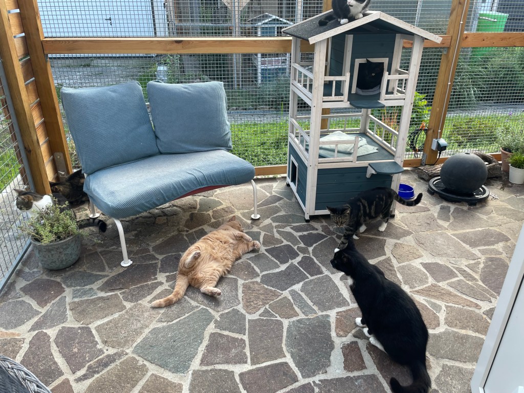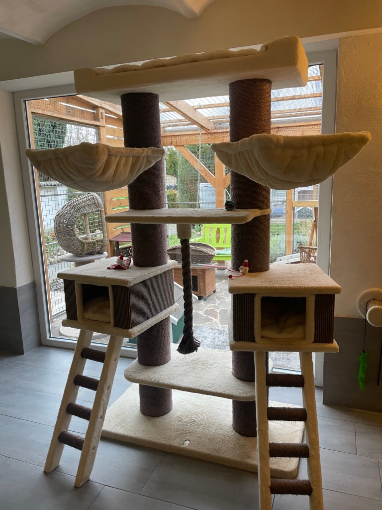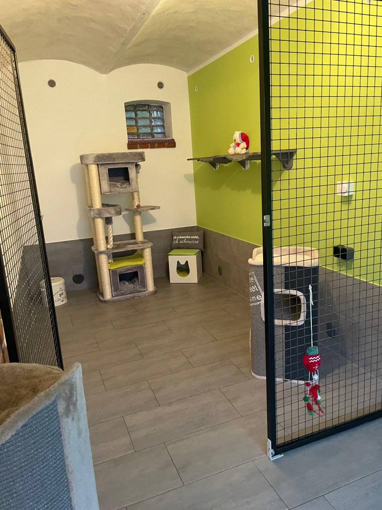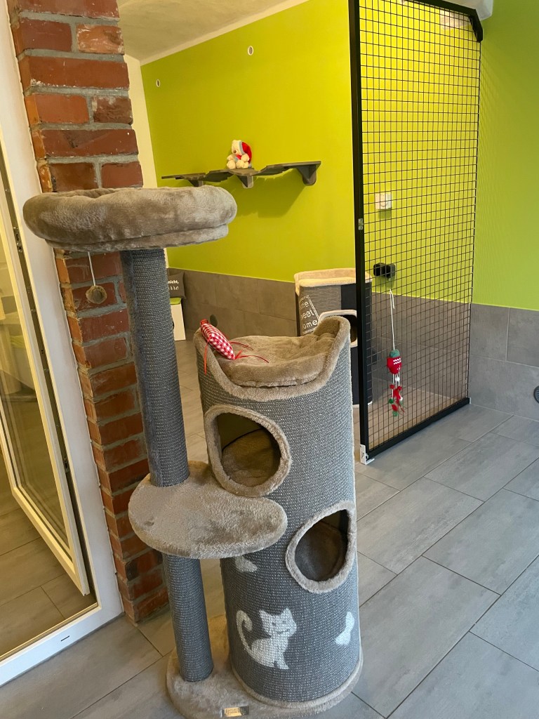 Am Stadtrand von Cottbus gelegen ist im Mai 2020 eine kleine, aber feine Katzenpension entstanden. Aufgrund der vielen Nachfragen, wurde im Sommer 2023 eine zweite Pension eröffnet. Platz für viele Samtpfötchen in mehreren Katzenzimmern und zwei Außengehegen inkl. Wasserspielen stehen Ihren Lieblingen zur Verfügung. Kratzen, schlafen, verstecken, kuscheln und die Aussicht genießen: all das und noch viel mehr bieten unsere Kratzbäume und Kratzmöbel sowie die zahlreichen Spiel-, Kletter- und Versteckmöglichkeiten auf verschiedenen Ebenen.